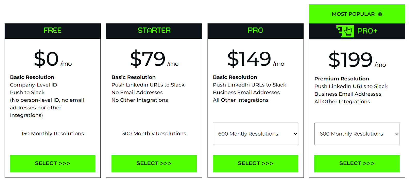 RB2B offers a forever-free plan that lets you identify up to 150 companies per month with Slack integration. As your needs grow, you can upgrade to one of three plans: