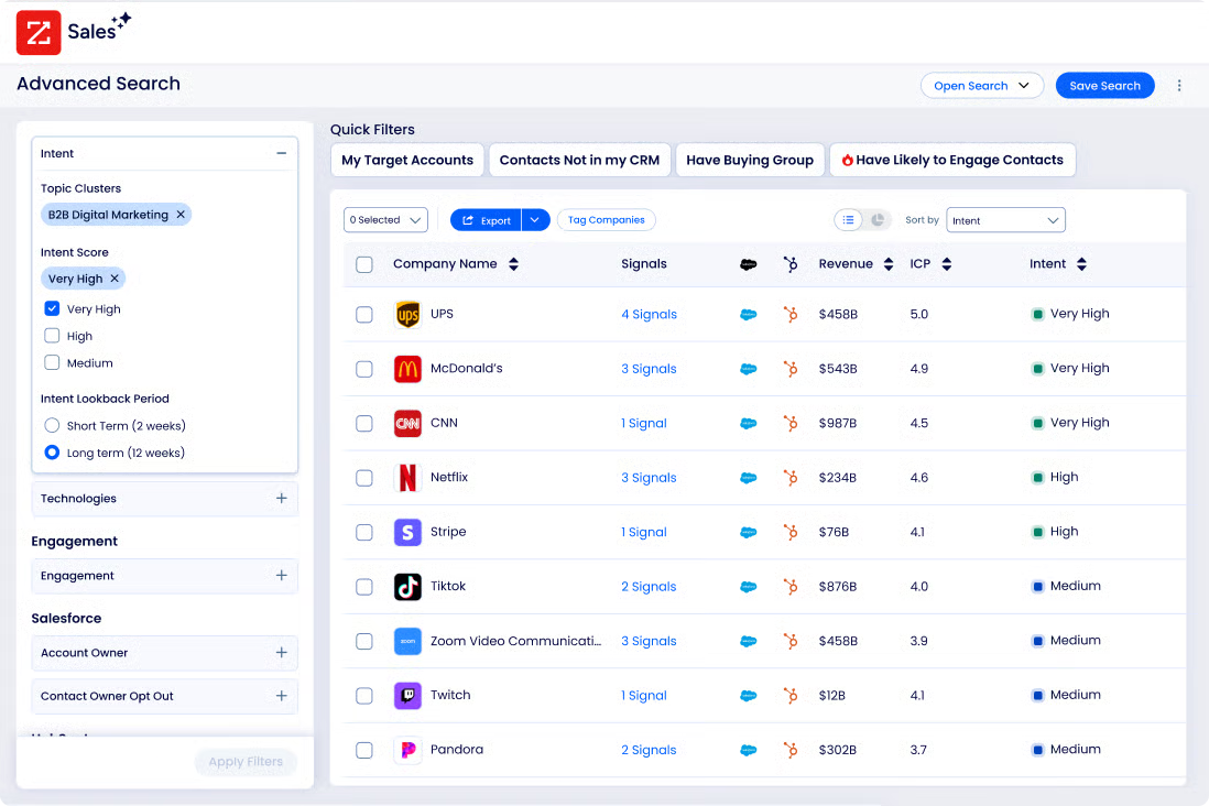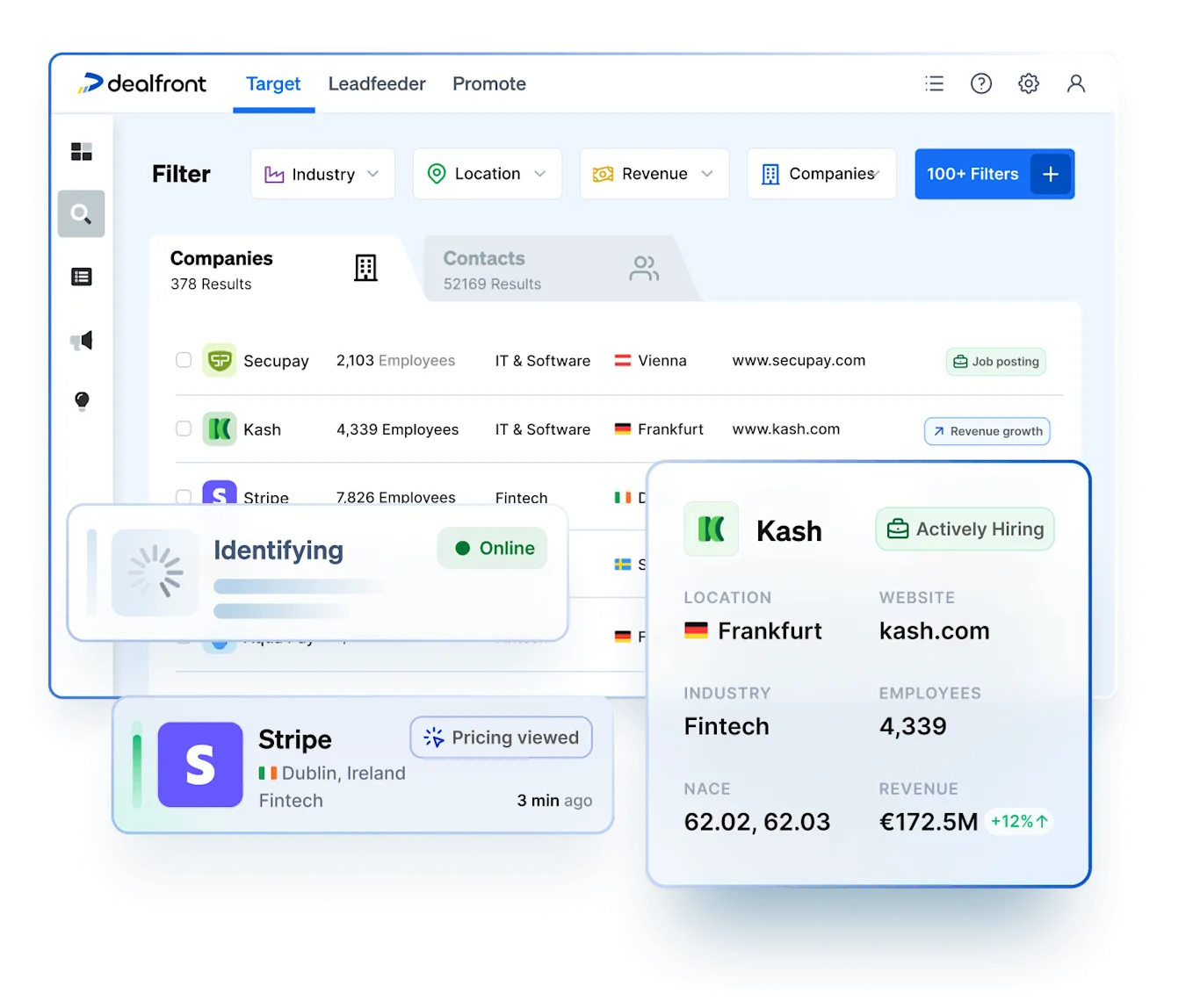 Real-Time Insights: DealFront delivers buying signals and intent data to your CRM with minimal research required.
