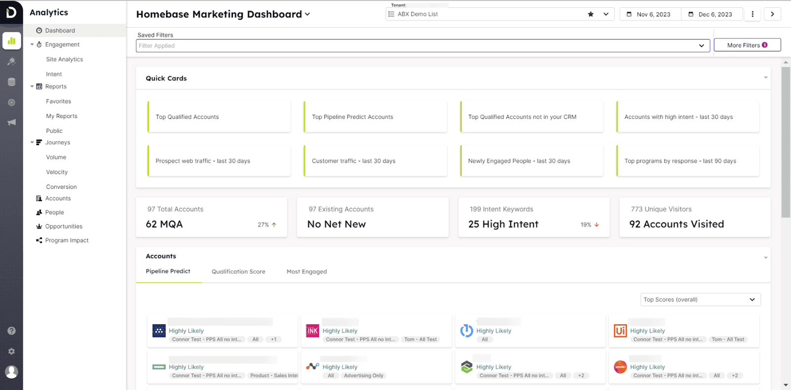 Demandbase and 6sense are both enterprise-grade ABM platforms with predictive analytics and intent data capabilities. As covered in your second article, 6sense is extremely powerful but comes with a hefty price tag that puts it out of reach for many teams.