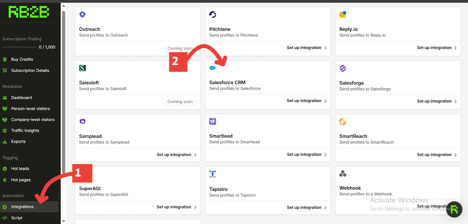 Next, connect RB2B to Salesforce using the built-in integration.
