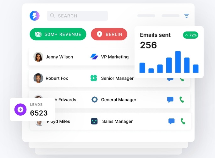 Besides email addresses, Cognism can source phone numbers and intent data. To ensure the info is correct and up-to-date, it uses a verification system that combines AI and human input. It even checks Do Not Call lists in several European countries, which is rare.