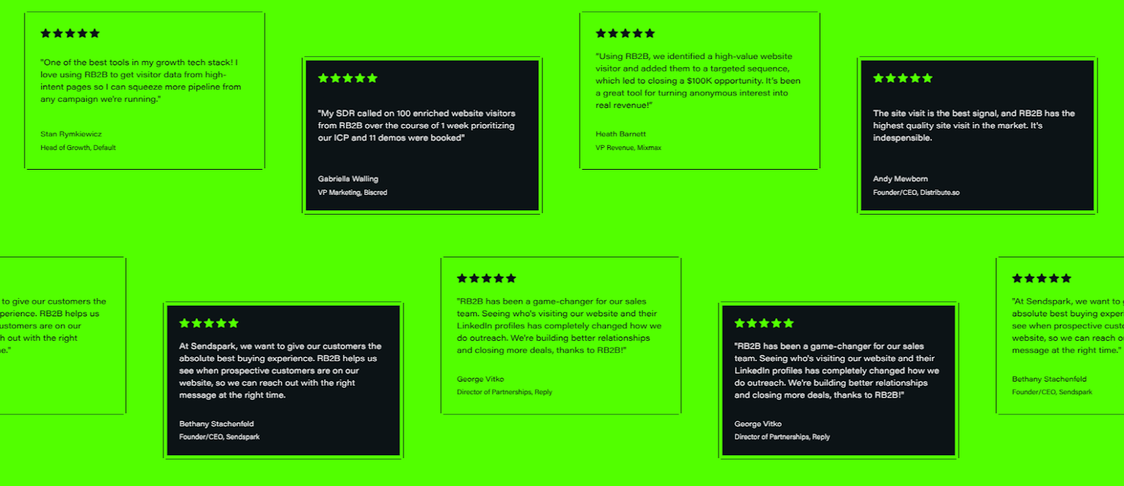 RB2B is built for speed, activation, and accountability. By identifying real buyers and pushing intent signals straight to sales workflows, RB2B helps teams book more meetings and move deals forward faster, without guessing who to contact today.