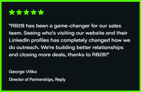 Sign up with RB2B and get 150 monthly credits and LinkedIn profiles sent to Slack with no credit card required. Start with RB2B's 7-day free trial and begin discovering new leads.
