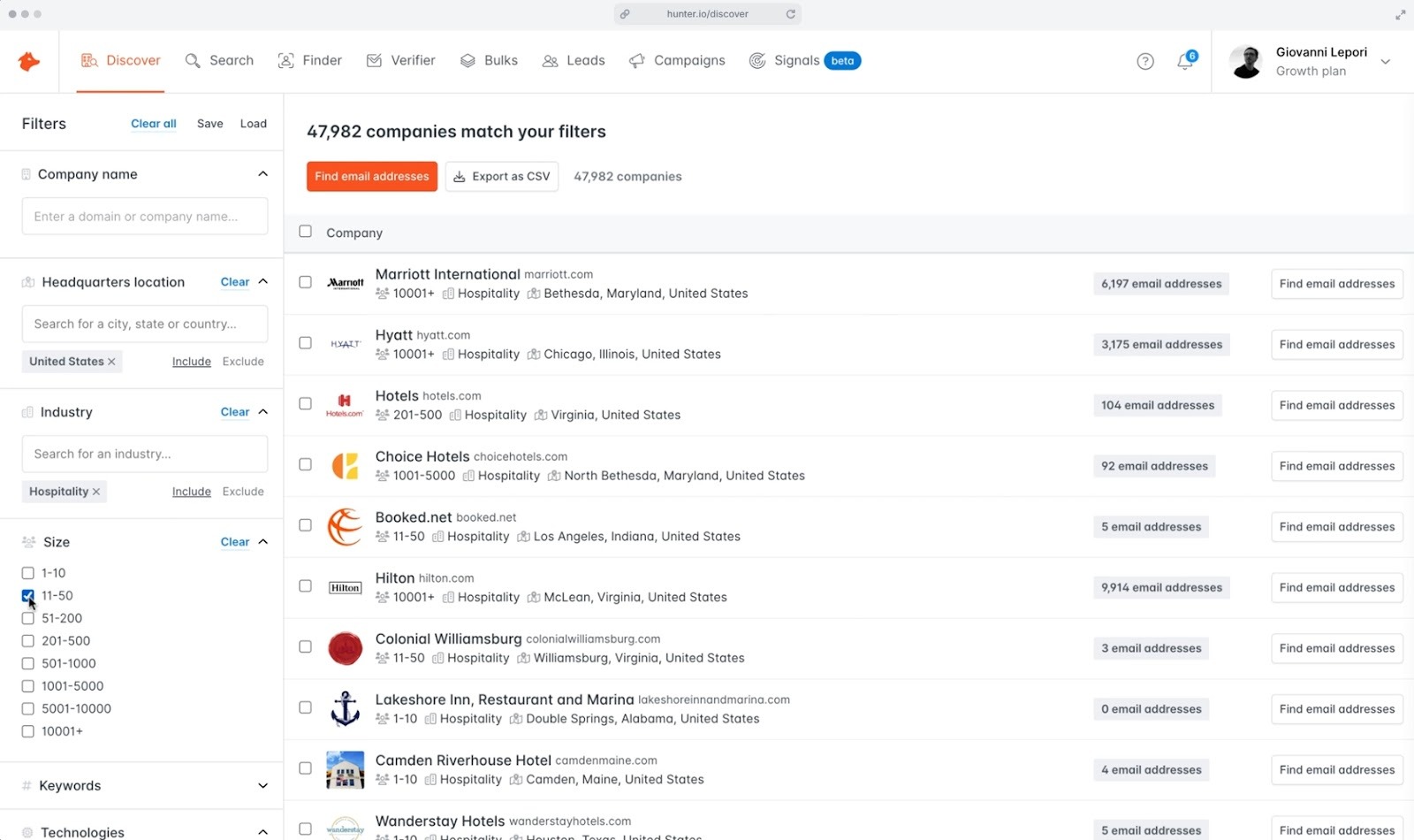 Hunter has indexed around 107 million professional email addresses so far. The best part is—it does a great job of ensuring data accuracy and compliance, which many of its competitors fail to do.